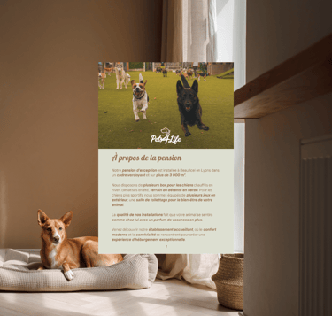 Chez Pets4Life, tout est réuni pour que ton chien se sente comme chez lui, avec un doux parfum de vacances en plus. Confort, sécurité et attention personnalisée : une expérience d’hébergement unique, dans un lieu chaleureux et convivial.